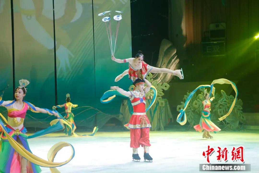 2019年7月,雜技劇《冰秀·尋夢》在哈爾濱首演。此次演出在傳統(tǒng)雜技的基礎(chǔ)上融合了花樣滑冰、冰上雜技、冰上特技等,令中外游客暢享冰雪藝術(shù)。中新社記者 呂品 攝