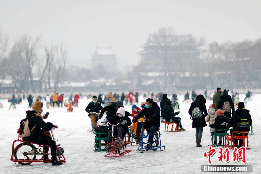 2022年1月22日,北京,民眾在什剎海冰場體驗冰上運動。中新社記者 盛佳鵬 攝