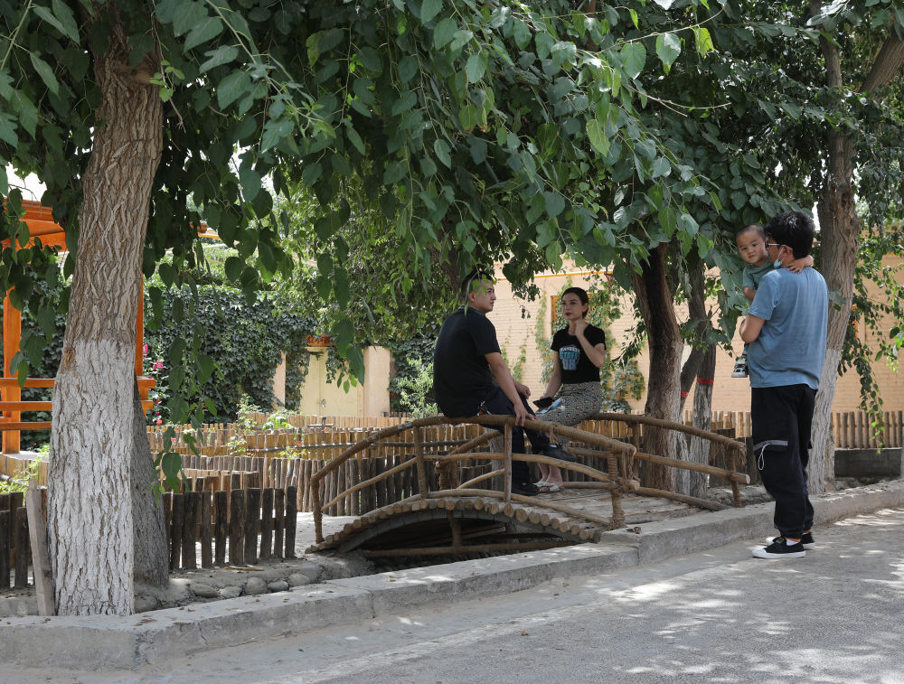 和田縣縣委常委、統(tǒng)戰(zhàn)部部長艾尼瓦爾·阿迪力告訴記者,2019年全縣脫貧摘帽后,對于如何推進(jìn)鄉(xiāng)村振興,縣委提出先試點(diǎn),再以點(diǎn)帶面,稻香村就是鄉(xiāng)村“開放式”旅游的試點(diǎn)村。這個村種植水稻上萬畝,頗有“水鄉(xiāng)”風(fēng)貌,315國道穿村而過,交通優(yōu)勢明顯,最關(guān)鍵的是基層干部通過細(xì)致入微的工作,激發(fā)起群眾積極支持和參與旅游興村的熱情。