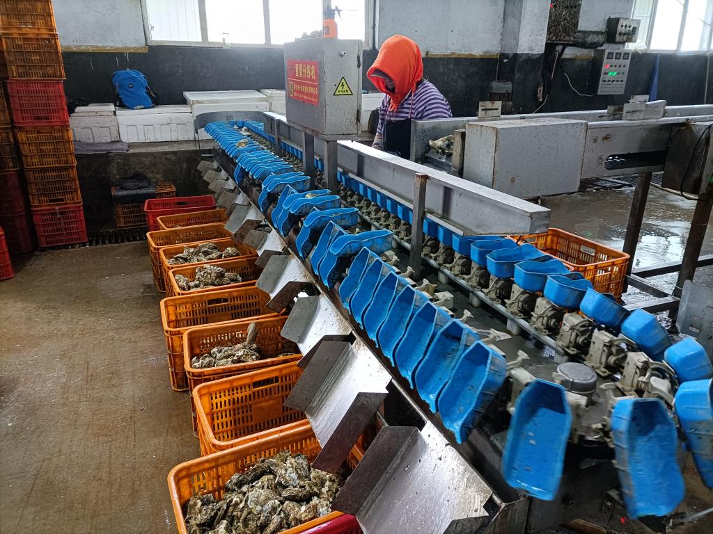 初步清理后的生蠔被送進公司在島上的廠房里,經(jīng)過自動化的清洗、按重量分揀等程序,保溫打包后發(fā)往全國各地。