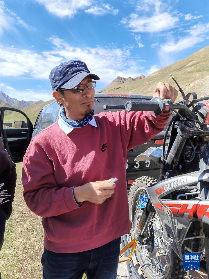 管護(hù)員強(qiáng)巴出發(fā)前調(diào)試巡邏用摩托車。(受訪者提供)