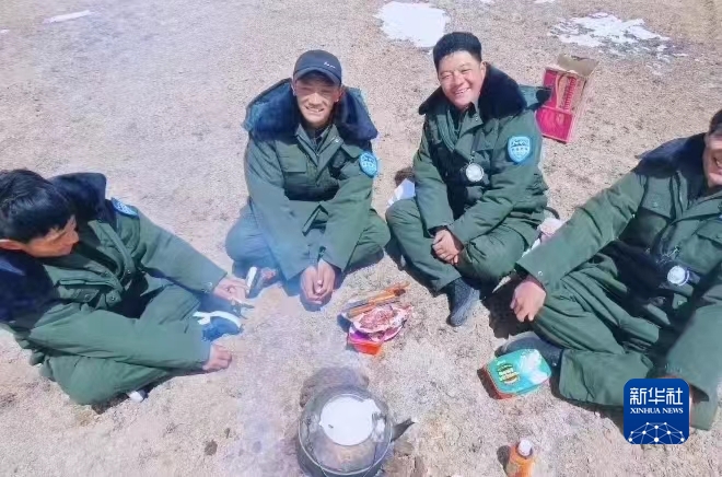 雙湖縣管護(hù)員在巡邏時(shí)用餐。(受訪者提供)