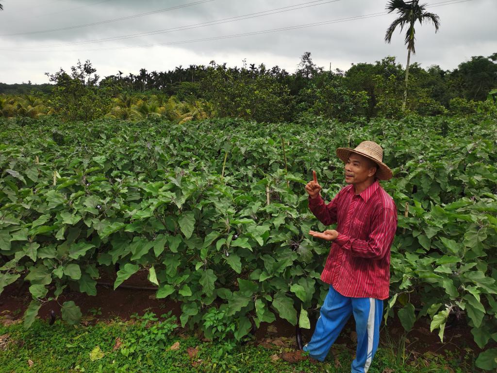 ??谑协偵絽^(qū)道崇村村民王統(tǒng)奮在介紹他種植茄子的秘訣。新華社記者趙葉蘋攝