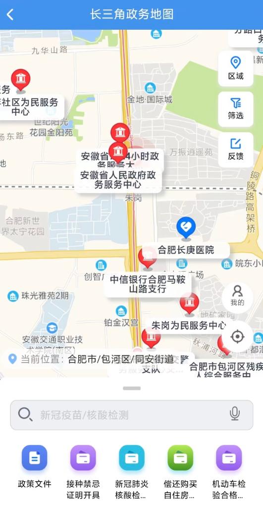 “長三角政務(wù)地圖”手機截圖頁面。(安徽省數(shù)據(jù)資源管理局供圖)