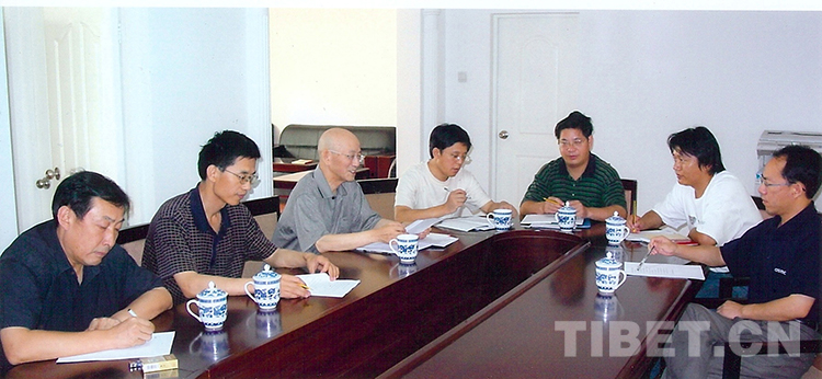 圖為陳慶英先生(左3)主持中國藏學(xué)研究中心歷史研究所會議,討論《西藏通史》相關(guān)工作 (圖片由張云提供)