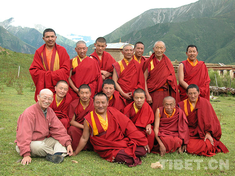 圖為1997年8月,海峽兩岸藏學(xué)研討會(huì)后,兩岸藏學(xué)學(xué)人在青海黃南州河南蒙旗考察,陳慶英先生(中)和與會(huì)部分學(xué)者合影