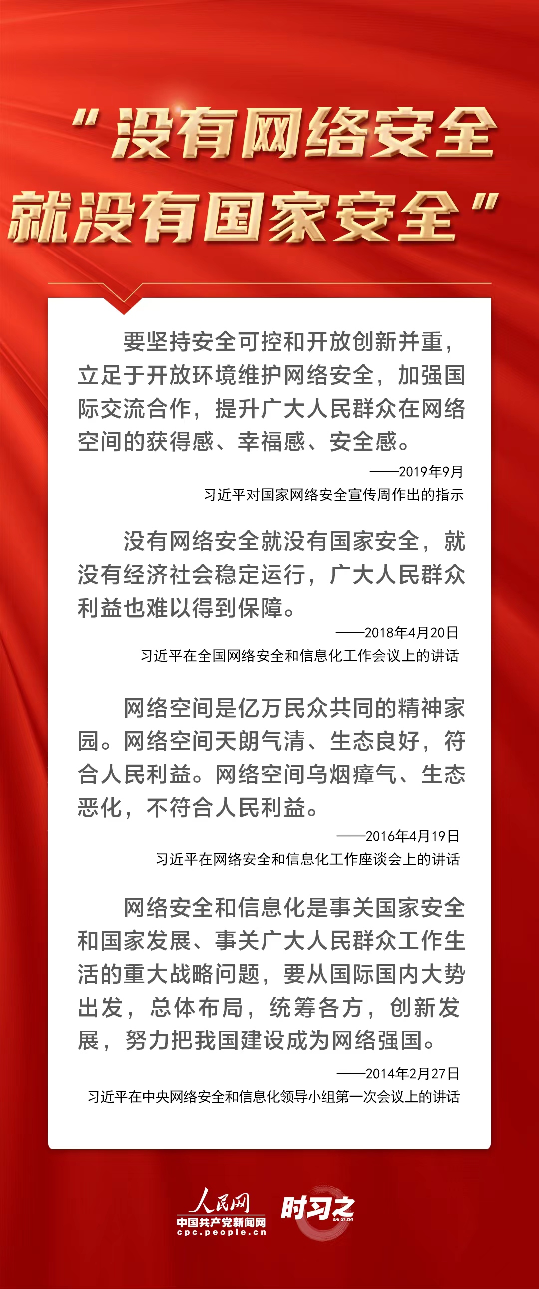 沒有網(wǎng)絡(luò)安全就沒有國家安全。今年是《中華人民共和國網(wǎng)絡(luò)安全法》施行五周年。一直以來,習(xí)近平總書記高度重視網(wǎng)絡(luò)安全和信息化工作,敏銳把握信息時代“時”與“勢”,多次在不同場合就網(wǎng)絡(luò)安全發(fā)表一系列重要論述,為維護國家網(wǎng)絡(luò)安全,筑牢國家網(wǎng)絡(luò)安全屏障奠定基石。