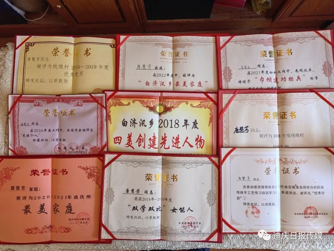 唐慧芳孝老愛親的精神不僅讓自己的公公婆婆能夠安享晚年幸福生活,也用實(shí)際行動(dòng)感染了晚輩。她的家庭多次被州婦聯(lián)評(píng)定為“最美家庭”,她多次被縣、鄉(xiāng)、村評(píng)定為“最美人物”“雙學(xué)雙比”女能人、“優(yōu)秀黨員”“巾幗建功標(biāo)兵”“先進(jìn)個(gè)人”。她用她的樸實(shí)真誠詮釋著中華兒女尊老愛老、孝老愛親的優(yōu)秀品質(zhì),她用她的無私奉獻(xiàn)踐行了一名共產(chǎn)黨員甘當(dāng)群眾的“貼心人”的莊嚴(yán)承諾!