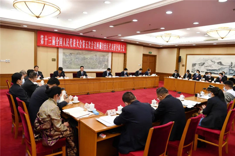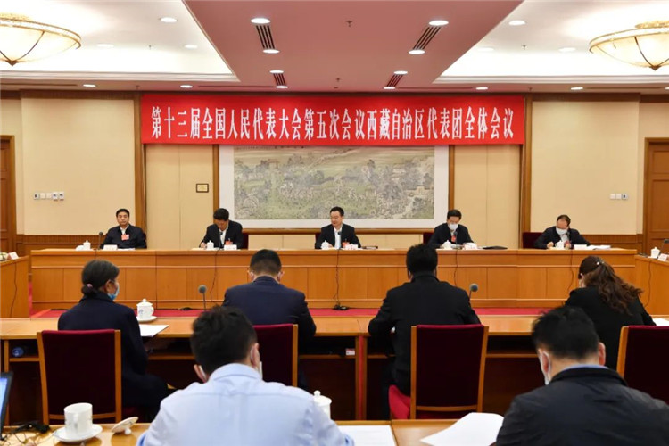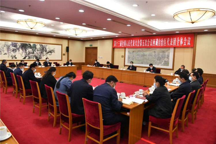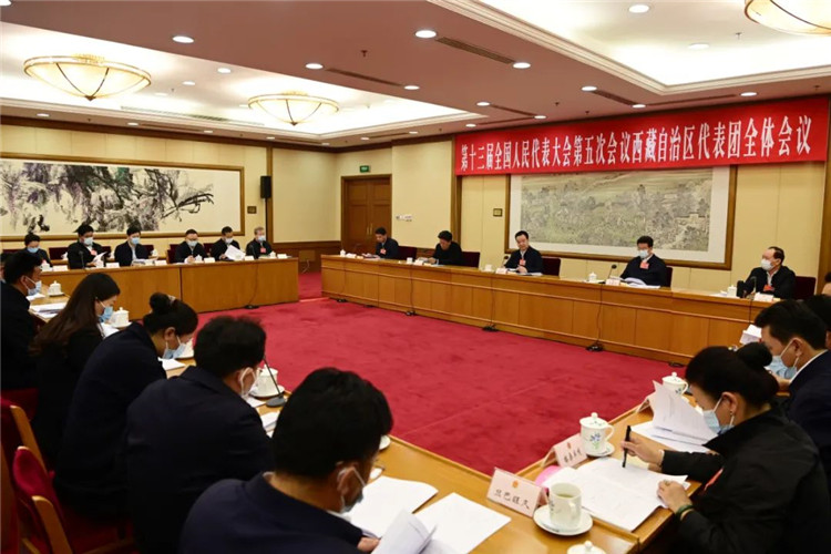 圖為3月3日下午,十三屆全國人大五次會議西藏自治區(qū)代表團召開第一次全體會議。旦增西旦 攝