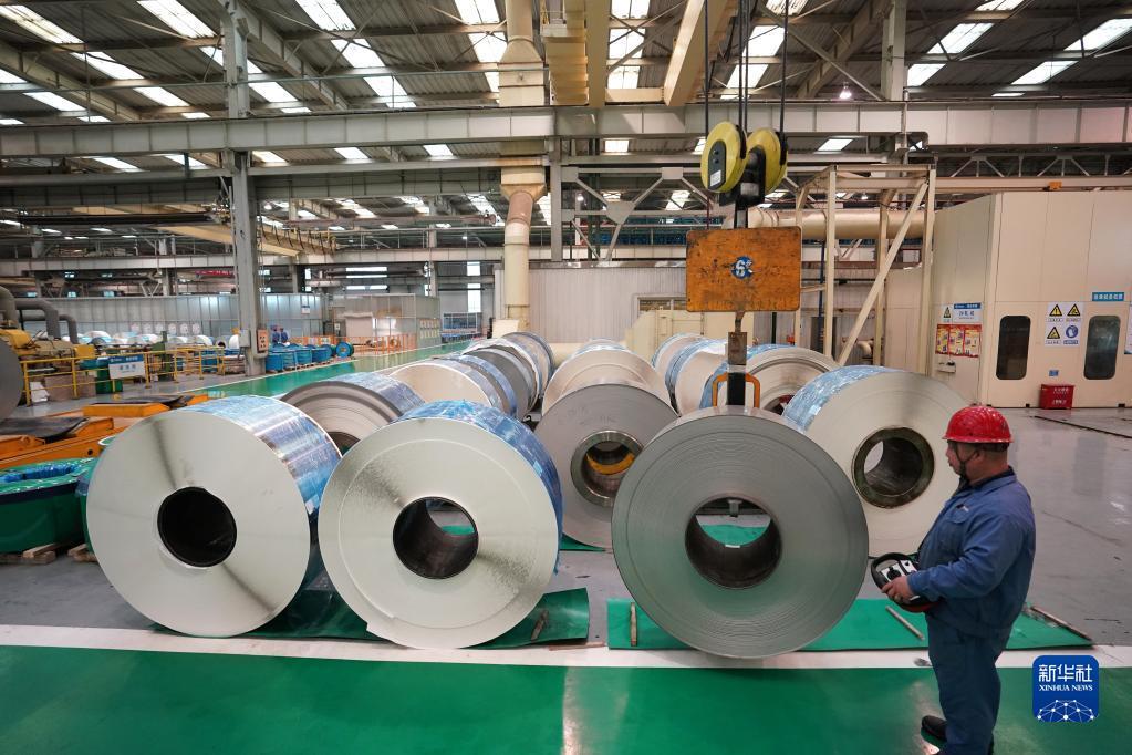 山西太原,中國寶武山西太鋼不銹鋼精密帶鋼有限公司車間,生產(chǎn)線上機(jī)器轟鳴,一卷卷薄如蟬翼、光滑如鏡的鋼材經(jīng)過壓延、清洗、包裝等步驟自動化制成。