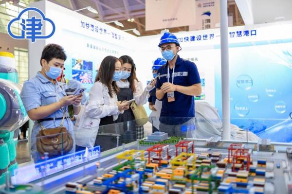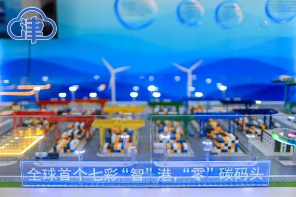 在科技感十足的天津港展臺前,天津港c段智能集裝箱碼頭的全景沙盤吸引了大家的目光。“這是全球首個‘智慧零碳’碼頭,標(biāo)志著天津港集團(tuán)努力打造世界一流的智慧港口、綠色港口有了最新重大成果,將以全新模式引領(lǐng)世界港口智能化升級和低碳發(fā)展。”天津港集團(tuán)展區(qū)工作人員高曉坤告訴記者。