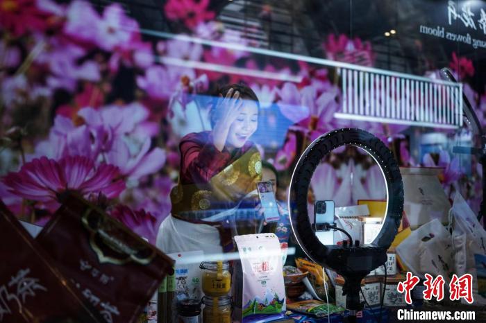 來(lái)自甘南州的主播在展位上進(jìn)行短視頻直播帶動(dòng)家鄉(xiāng)特產(chǎn)銷(xiāo)售,幫助更多鄉(xiāng)親致富增收。 佟郁 攝