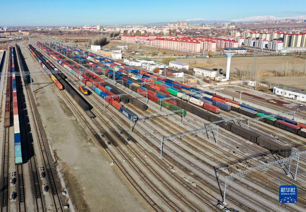 這是新疆霍爾果斯鐵路口岸(2022年3月31日攝,無人機(jī)照片)。新華社發(fā)(吳志恒 攝)