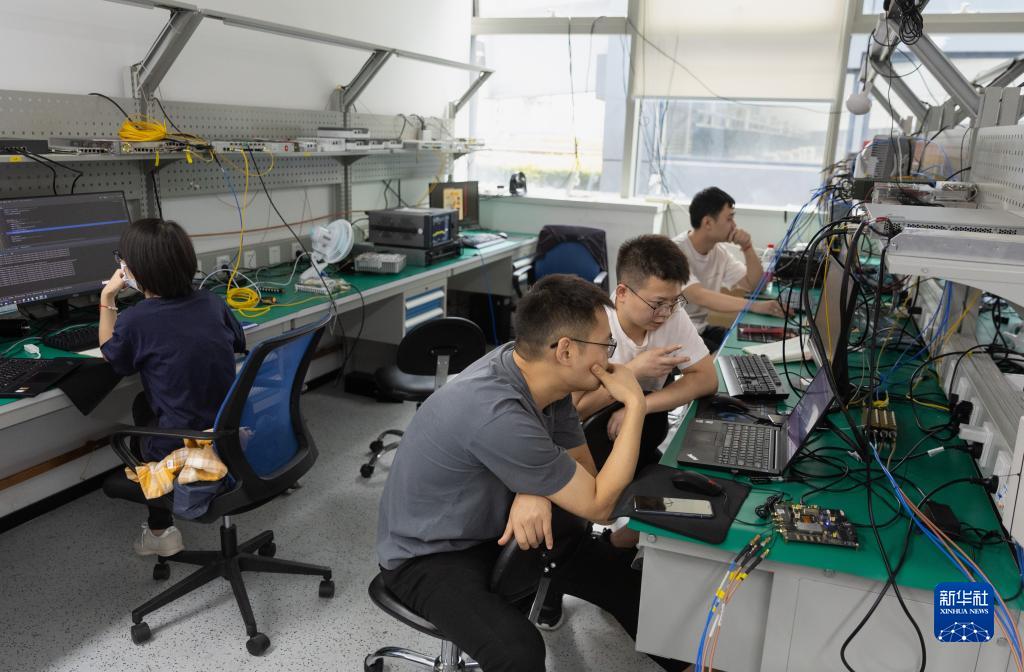 在成都中科微信息技術(shù)研究院有限公司,通信及芯片團(tuán)隊(duì)在討論研究工作(2022年9月21日攝)。新華社記者 江宏景 攝