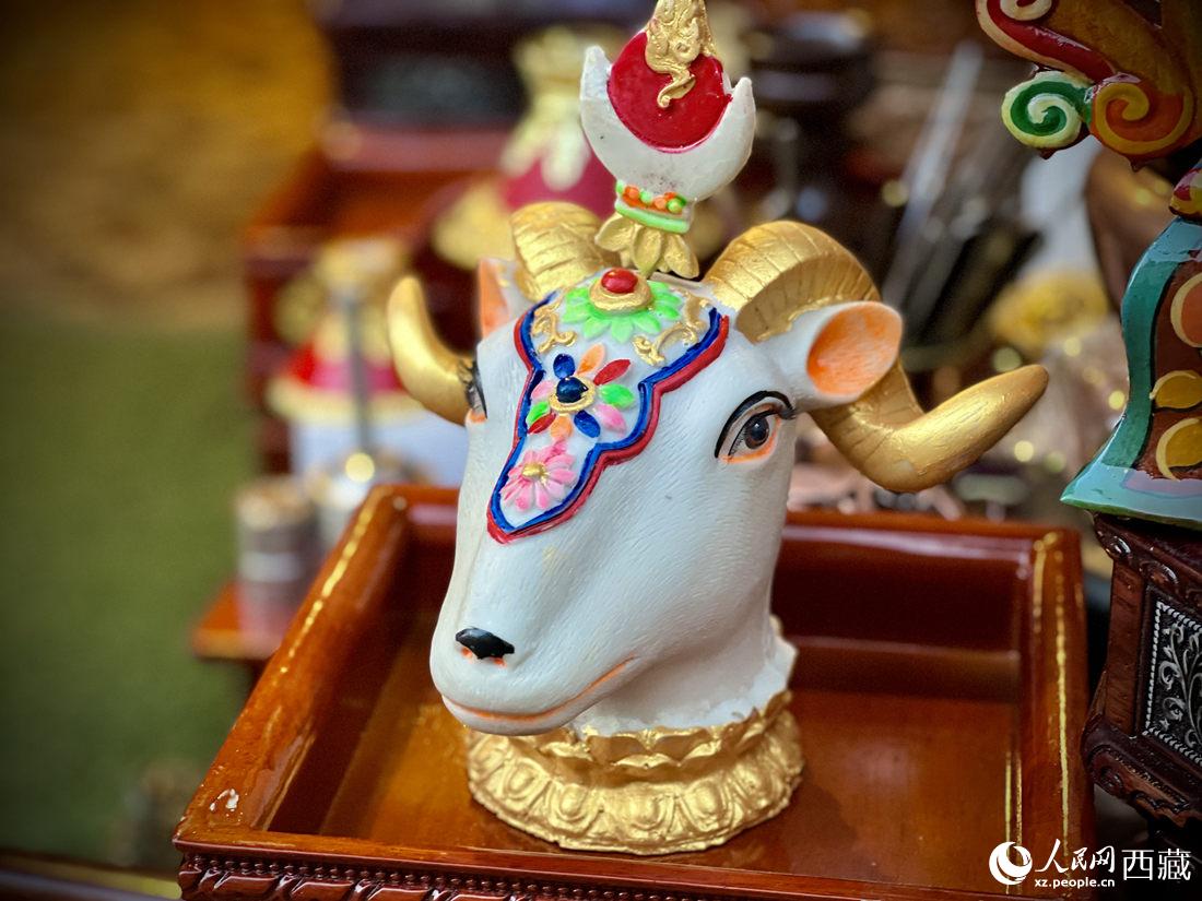 年貨市場(chǎng)上售賣的“隆果”。(在藏語(yǔ)中,“隆果” 是羊頭的意思,也是新年的諧音。它一般擺放在所有供品的中央,因?yàn)槿藗冋J(rèn)為“羊”是吉祥之物,同時(shí)也祈盼五谷豐登,六畜興旺。)人民網(wǎng) 次仁羅布攝