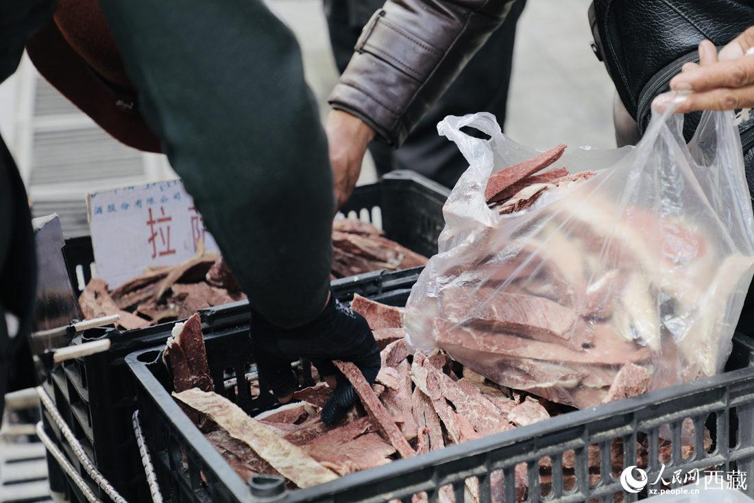 顧客正在選購(gòu)牦牛肉干。人民網(wǎng) 次仁羅布攝
