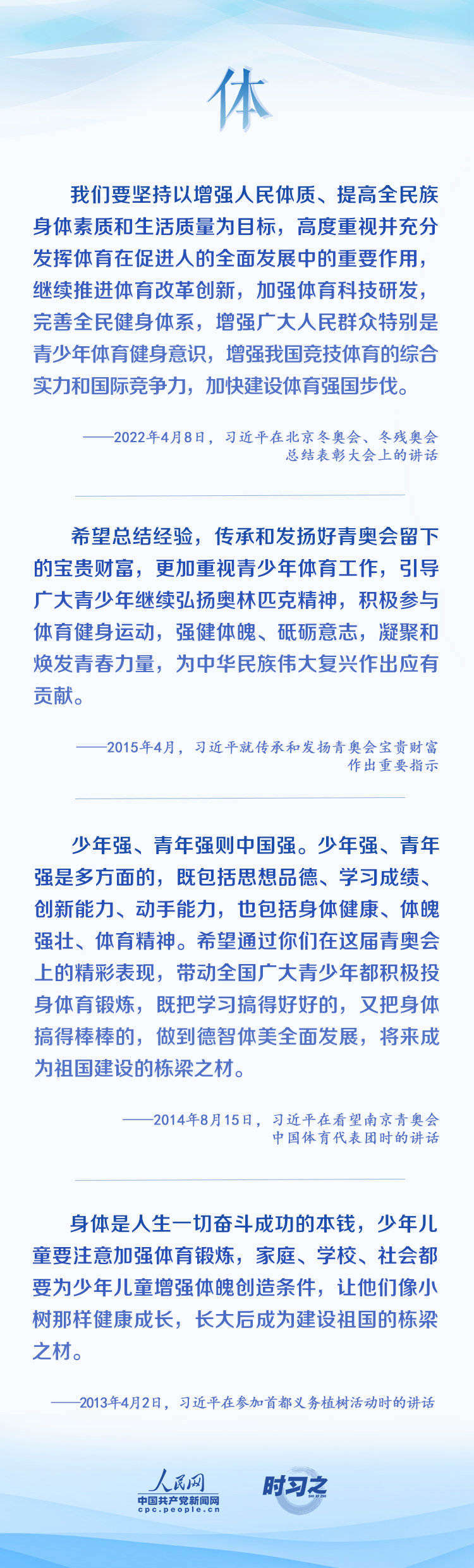 當代中國青年生逢盛世、肩負重任,與新時代同向同行、共同前進。在青春的賽道上奮力奔跑,爭取跑出當代青年的最好成績,習近平激勵青年要德智體美勞全面發(fā)展。