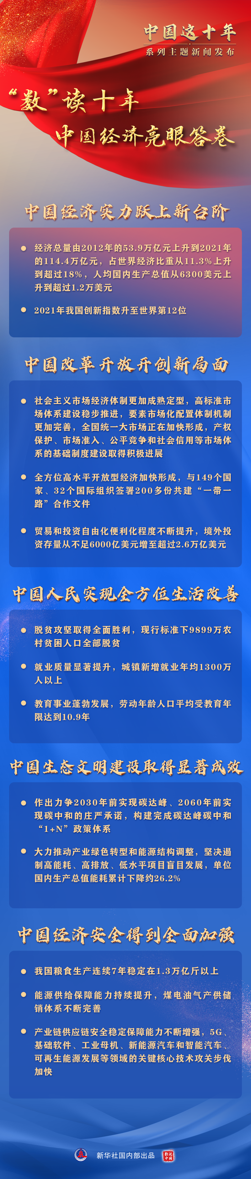 這十年,國資國企改革完成頂層設(shè)計,國有經(jīng)濟布局優(yōu)化和結(jié)構(gòu)調(diào)整持續(xù)推進,非公有制經(jīng)濟發(fā)展環(huán)境不斷優(yōu)化,民營企業(yè)數(shù)量從1085萬戶增長到4457萬戶;形成100多萬億元經(jīng)濟總量、14億多人口、4億左右中等收入群體的強大內(nèi)需市場;營商環(huán)境全球排名從2013年的第96位躍升至最新的第31位;我國引資規(guī)模穩(wěn)居發(fā)展中國家首位,2021年實際使用外資1.15萬億元人民幣,較2012年增長62.9%……