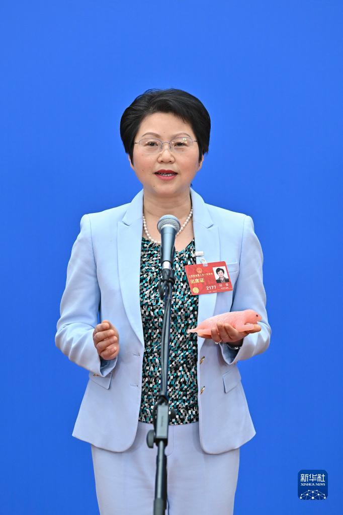 3月5日,第十四屆全國人民代表大會(huì)第一次會(huì)議舉行首場“代表通道”采訪活動(dòng)。這是全國人大代表侯蓉接受媒體采訪。新華社記者 劉金海 攝