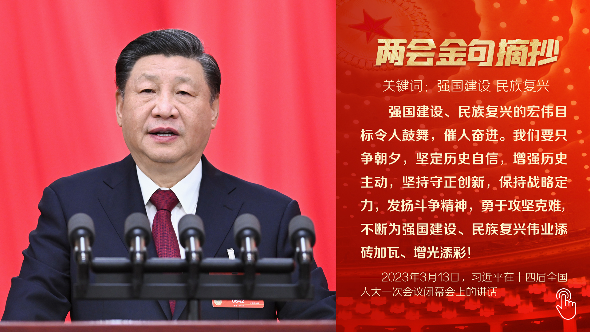 “在新征程上作出無負時代、無負歷史、無負人民的業(yè)績,為推進強國建設、民族復興作出我們這一代人的應有貢獻!”2023年全國兩會閉幕之際,習近平總書記發(fā)出的號召,澎湃人心,催人奮進。