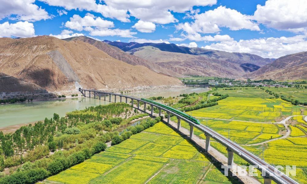 資料圖:在拉林鐵路上行駛的復(fù)興號(hào)列車(chē)