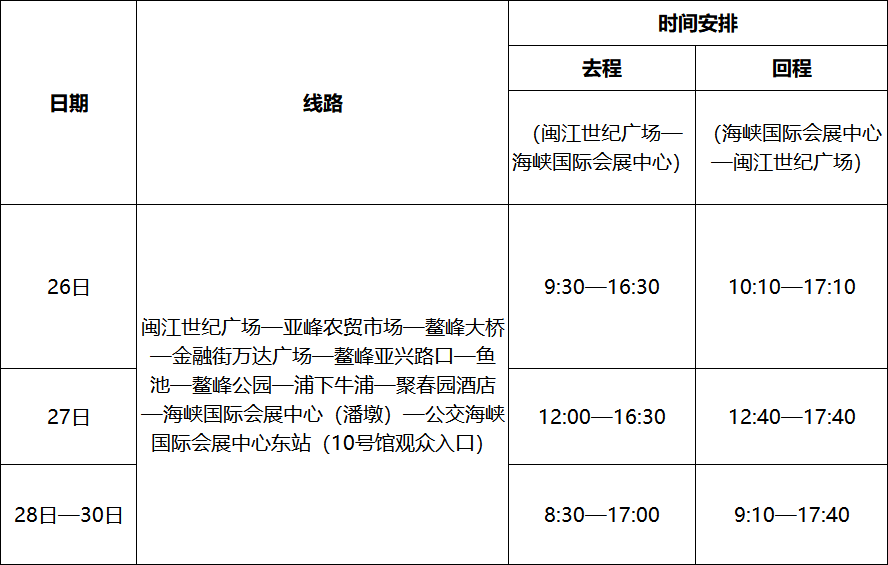 ?。?)可乘坐白湖亭——海峽國(guó)際會(huì)展中心區(qū)間專線,從白湖亭站出發(fā)直達(dá)海峽國(guó)際會(huì)展中心(1號(hào)館)。