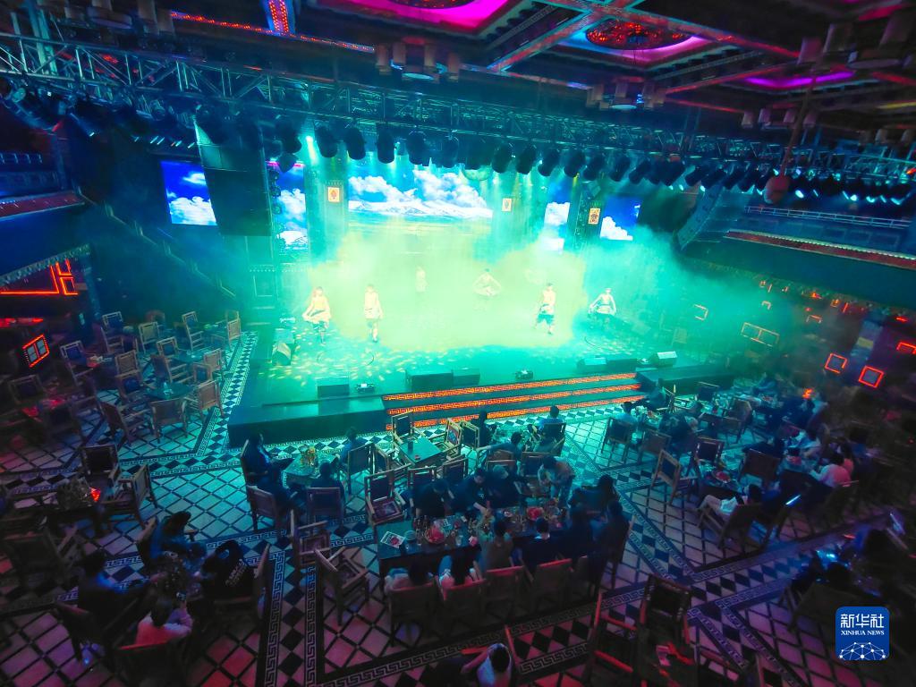 舞臺上,演員與歌手身著華麗的藏裝,燈影中的藏舞伴隨悠揚的音樂,將臺下觀眾帶入神秘迷人的世界。[詳細]