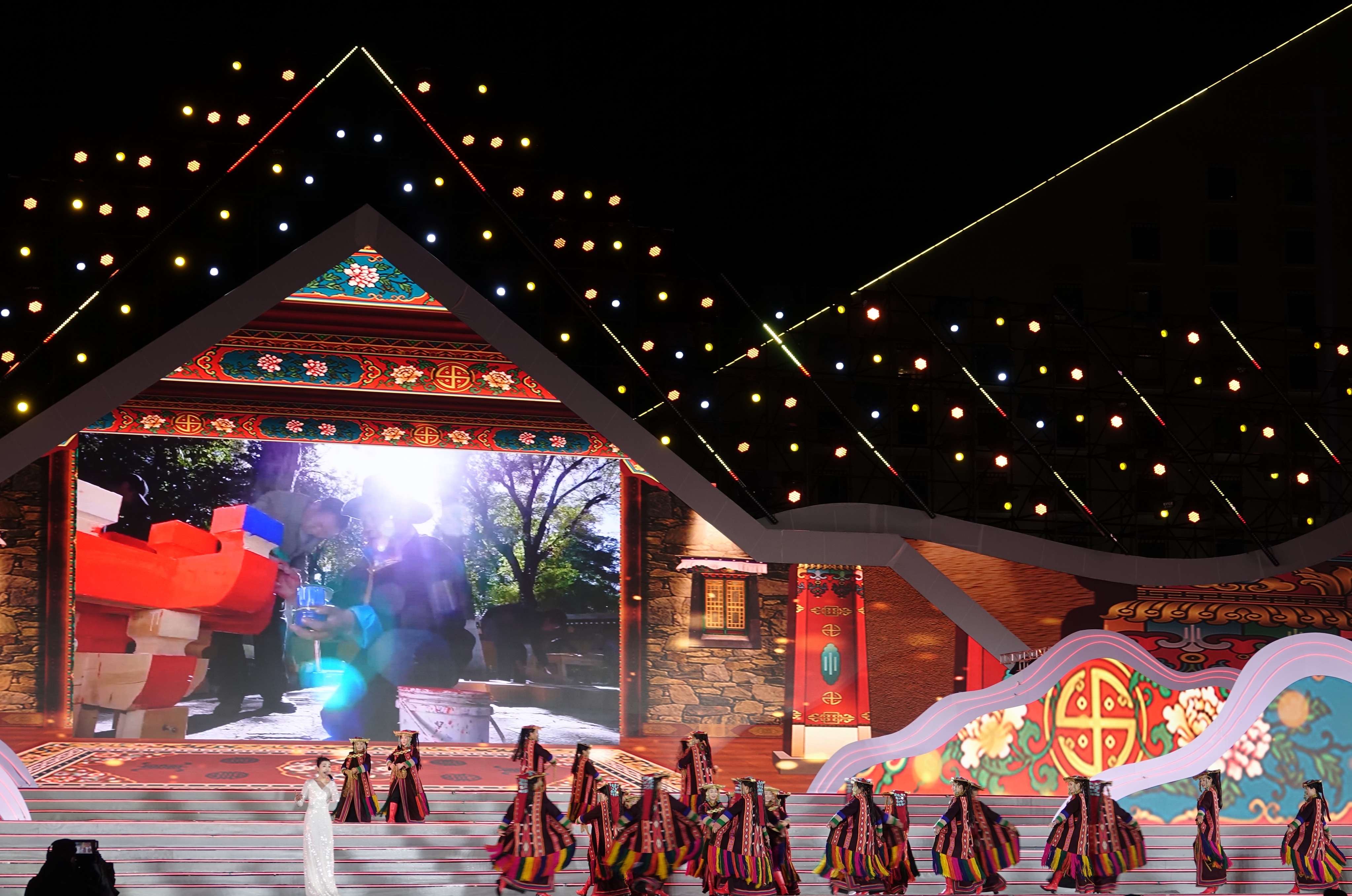 文藝演出《擁抱新西藏》在經(jīng)久不息的歡呼聲中開場。京劇《四郎探母》、藏戲《扎西雪巴》、粵劇《文成公主》選段,三種戲曲藝術跨界融合表演,充分展現(xiàn)了中華優(yōu)秀傳統(tǒng)文化的魅力,在文化的交融中飽含各族兒女對祖國母親的熱愛和眷戀之情。情景歌舞《我來了,西藏》《金色家園》《呀啦嗦》《幸福踏歌》等精彩節(jié)目,生動展現(xiàn)了新時代十年西藏各項事業(yè)取得的全方位進步、歷史性成就;《牽夢西藏》《心手相連》《云端上的納木措》《藍天下的祝福》《悅音飛揚》《飲酒歌》,充分展示了西藏自然風光之美、歷史人文之美、民族風情之美、包容開放之美,再次向世界發(fā)出真誠邀約,歡迎四面八方的朋友親近西藏、感悟西藏。