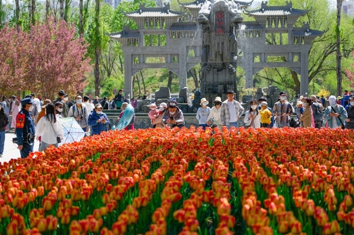 人民公園西湖岸邊的“雙湖煙柳”,被稱為“人工繡景”,是西寧新八景之一,湖岸曲折有致、湖心亭玲瓏別致、浪外廊清幽雅致、桐鳳亭飛檐翹角、八角亭琉璃碧瓦。每年“五一”園內(nèi)鋪滿30萬株左右色彩斑斕的郁金香,與點綴其間的榆葉梅、連翹、丁香等各色花木相映成趣,將人民公園裝扮為花的海洋,成為西寧市民春季賞花的最佳去處。