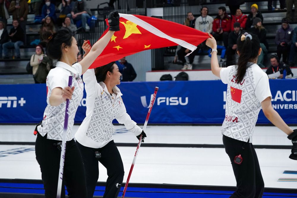 2023年1月22日,在美國普萊西德湖舉行的世界大學(xué)生冬季運動會女子冰壺決賽中,中國隊以6:4戰(zhàn)勝韓國隊,奪得金牌。新華社發(fā)