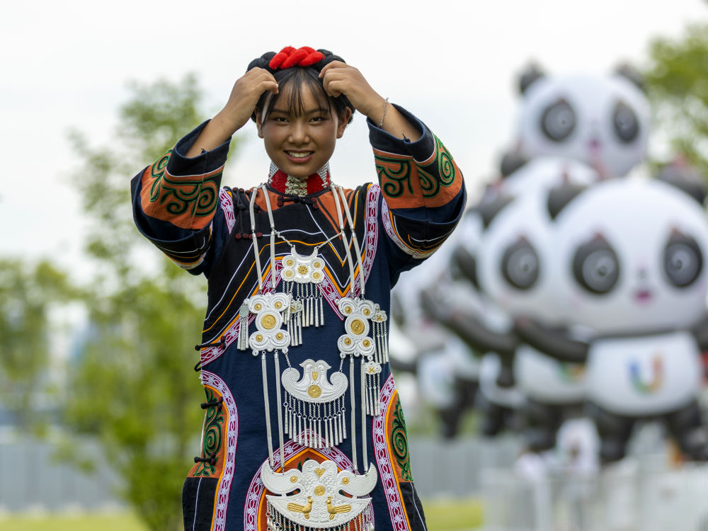 7月23日,準(zhǔn)備參加成都大運會開幕式彩排的吉好有果。新華社記者 沈伯韓 攝