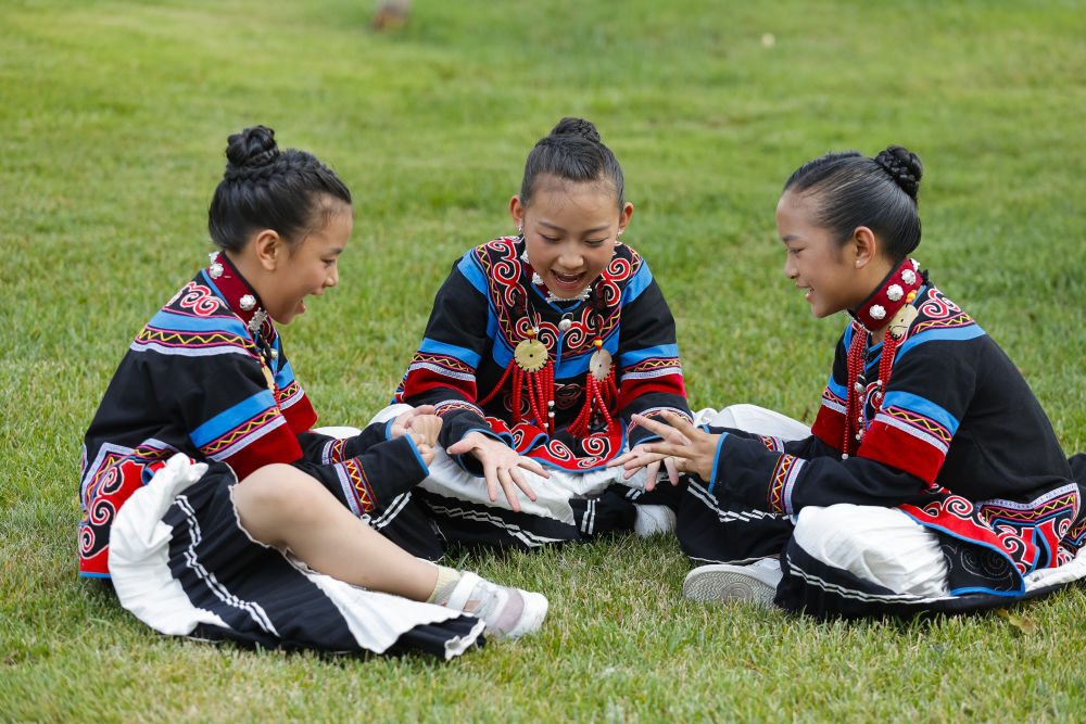 7月23日,成都大運會開幕式彩排結(jié)束后,一些演員主動和來自大涼山的孩子們拍攝合影。新華社記者 沈伯韓 攝