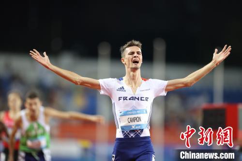 8月3日,成都大運會男子1500米決賽中,法國隊選手坎皮恩獲得冠軍?!≈行律缬浾?蔣啟明 攝