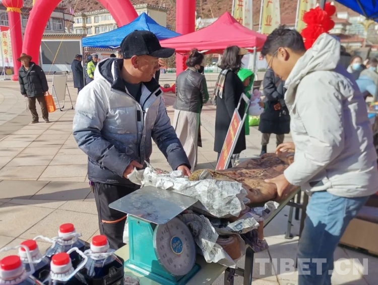 今年的年貨節(jié)除了大家熟悉的高原蜂蜜、索多西辣椒醬、鹽井葡萄酒,藏香豬肉也成了群眾們最青睞的年貨。來自徐中鄉(xiāng)的群眾澤仁曲措說:“今年的年貨節(jié)物品豐富,花樣繁多,我們一家人都來買年貨,心里特別高興。”