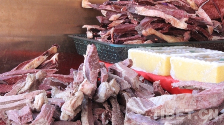 圖為年貨市場里的風(fēng)干牛肉 攝影:德吉卓瑪