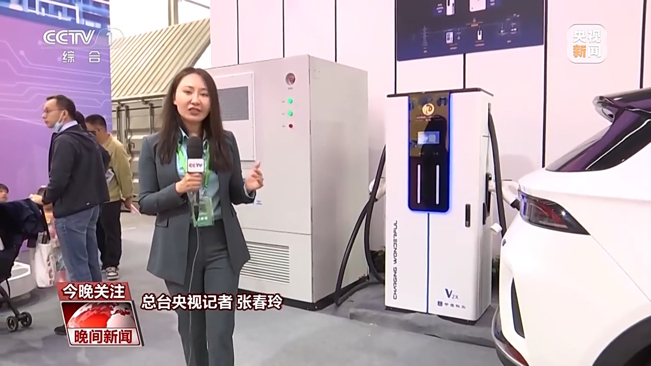 總臺央視記者 張春玲:在我們房子的頂部還有一個神秘的裝備就是新能源電池板,通過新能源電池板對太陽能的收集之后,它可以放在房屋這一側(cè)的儲能箱里,同時,它旁邊還有一個雙向的充電樁,這個充電樁可以給我們的新能源電池汽車進行充電,同時房子的能源匱乏的時候,我們的新能源汽車還可以反向的給這個房子放電,實現(xiàn)了能源循環(huán)利用。