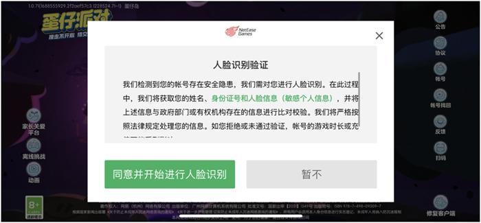 當(dāng)前,諸如“買號租號“這樣的非常規(guī)途徑,為未成年提供了繞開實名驗證的便利,以及部分家長在知情或不知情的情況下為孩子提供了成年人實名,都成為未成年人逃避防沉迷的主要手段。為了進(jìn)一步防止部分未成年冒用成年人身份進(jìn)行游戲和消費的現(xiàn)象,《蛋仔派對》將持續(xù)優(yōu)化和升級 AI巡邏識別技術(shù)。尤其針對存在大額充值行為的高風(fēng)險用戶,游戲內(nèi)將強(qiáng)制彈窗進(jìn)行人臉識別認(rèn)證,不通過認(rèn)證的賬號會被鎖定,無法進(jìn)行游戲。