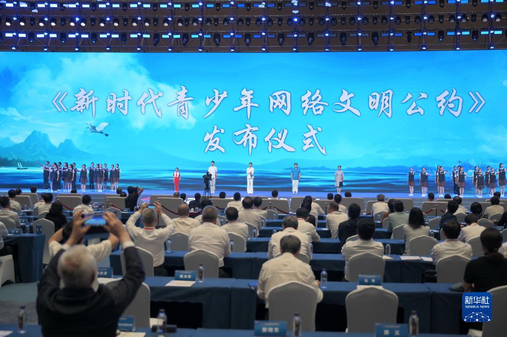 7月18日,2023年中國(guó)網(wǎng)絡(luò)文明大會(huì)主論壇發(fā)布《新時(shí)代青少年網(wǎng)絡(luò)文明公約》。新華社記者林善傳攝