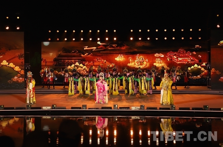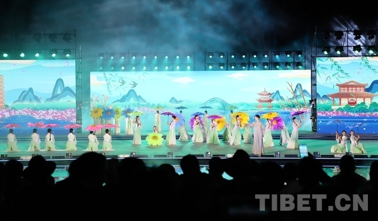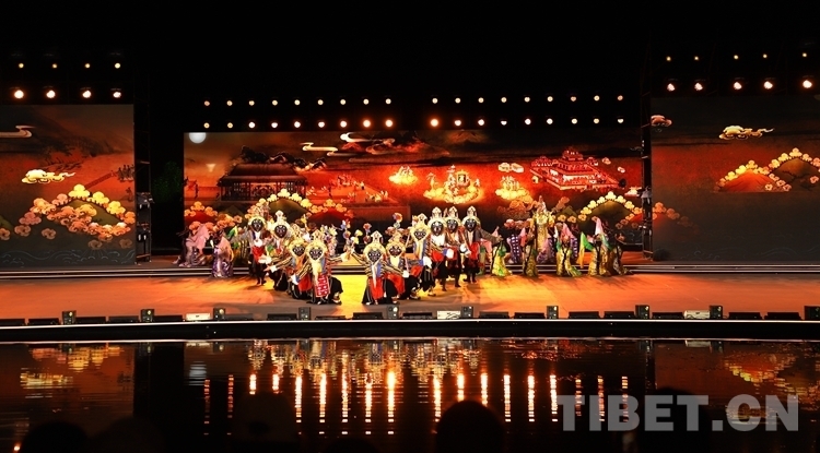 當(dāng)晚開幕式文藝演出共分為序《雪頓新韻》、上篇《相約雪頓》、下篇《心約拉薩》和尾聲《百年雪頓》四部分,整場文藝演出融合歌曲、舞蹈、藏戲、京劇、昆曲、街舞等元素,并以半實(shí)景的舞臺藝術(shù)形式上演《百年雪頓》等節(jié)目,線上線下呈現(xiàn)了一臺傳統(tǒng)與現(xiàn)代交相輝映、傳承與創(chuàng)新和諧相融、歷史與未來一脈相承的文藝盛宴。