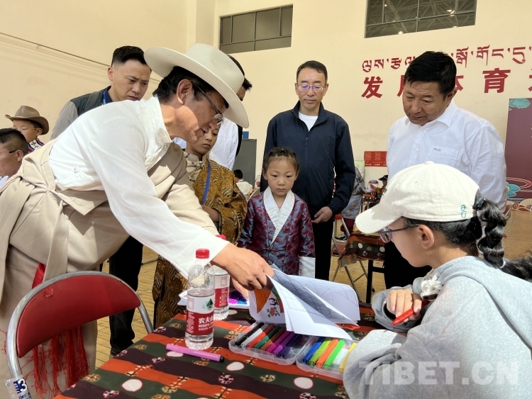 活動現(xiàn)場分比賽區(qū)域和表演區(qū)域。比賽采取單淘汰制,參賽選手們穿著民族服飾,以兩人一組為單位如火如荼地進行競技比賽。表演現(xiàn)場,各單位代表、學生以及家長們分組表演西藏 14路久棋、11 路密芒、5路和14路央棋、系列國王大臣棋、牛角棋、陽光拉薩棋、我不敗棋、牛角上狗追鹿棋等,還有小小藏棋老師給家長傳授藏棋玩法、畫棋盤、涂顏色黑白棋盤變彩色棋盤等,活動內(nèi)容豐富有趣。