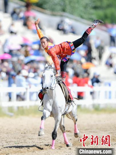 8月17日,西藏傳統(tǒng)體育項(xiàng)目——馬術(shù)表演亮相雪頓節(jié),在拉薩賽馬場開幕。民族傳統(tǒng)馬術(shù)表演內(nèi)容包括馬背上的舞蹈、馬上斬劈、馬上射箭、馬上敬酒、馬上拾哈達(dá)、多人多馬(疊羅漢)等10余個大項(xiàng)。當(dāng)天的活動,為民眾及游客帶來了一場視覺盛宴。