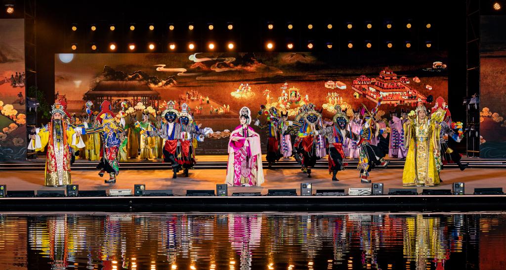 8月16日,在2023拉薩雪頓節(jié)開幕式文藝演出上,京劇藏戲《文成公主》上演。新華社記者 丁增尼達 攝