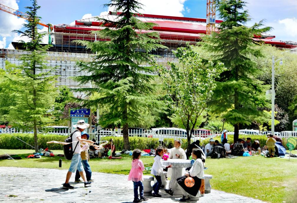 雪頓節(jié)期間,西藏各個景點游人如織、熱鬧非常。拉薩市民準備好毯子和小吃,到羅布林卡“過林卡”。園林內,既有小橋流水,也有恢弘建筑,雪頓節(jié)期間更有持續(xù)不斷的藏戲表演。