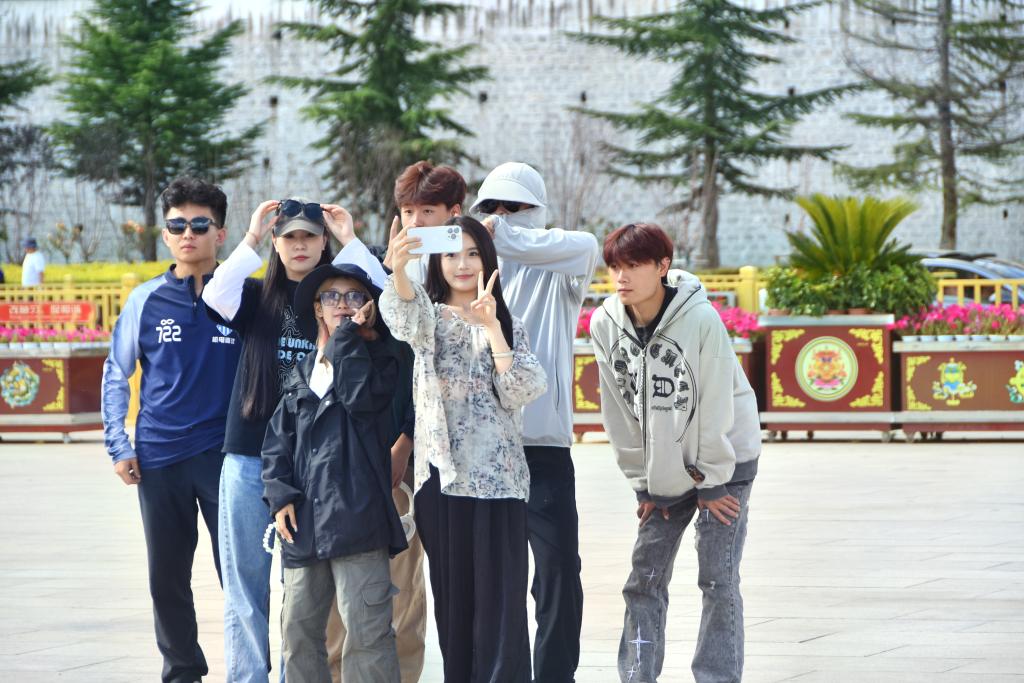 8月17日,布達拉宮廣場,游客們拍照留念。新華社記者 劉文博 攝