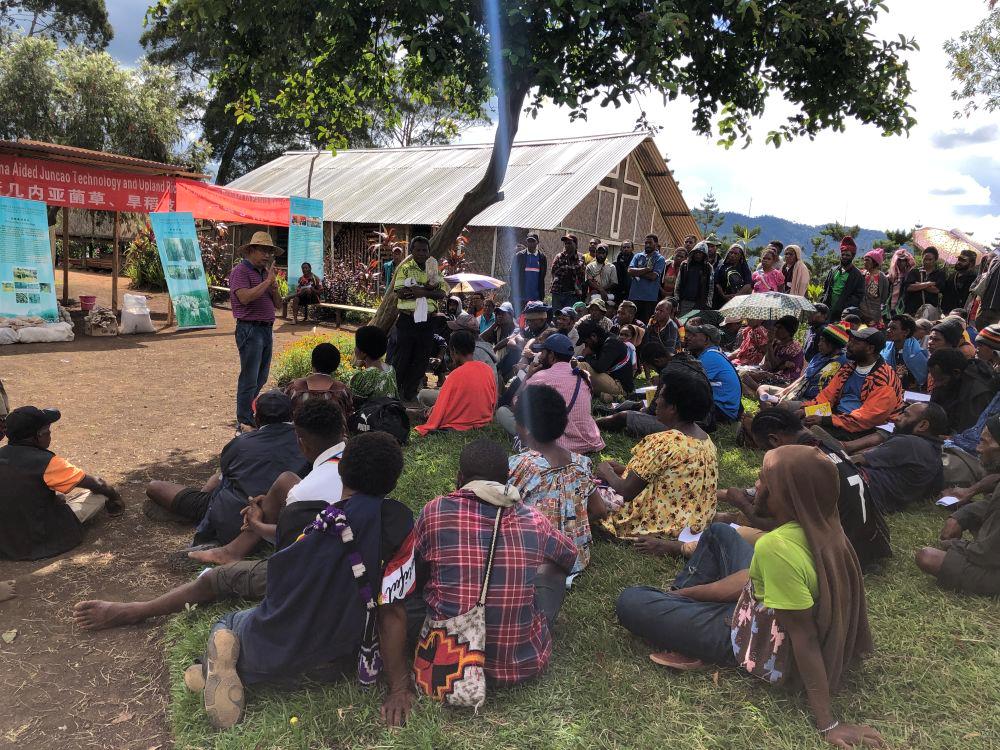 2020年12月15日,中國(guó)專家在巴布亞新幾內(nèi)亞?wèn)|高地省中國(guó)援助巴新菌草和旱稻技術(shù)項(xiàng)目第9期培訓(xùn)班上授課。
