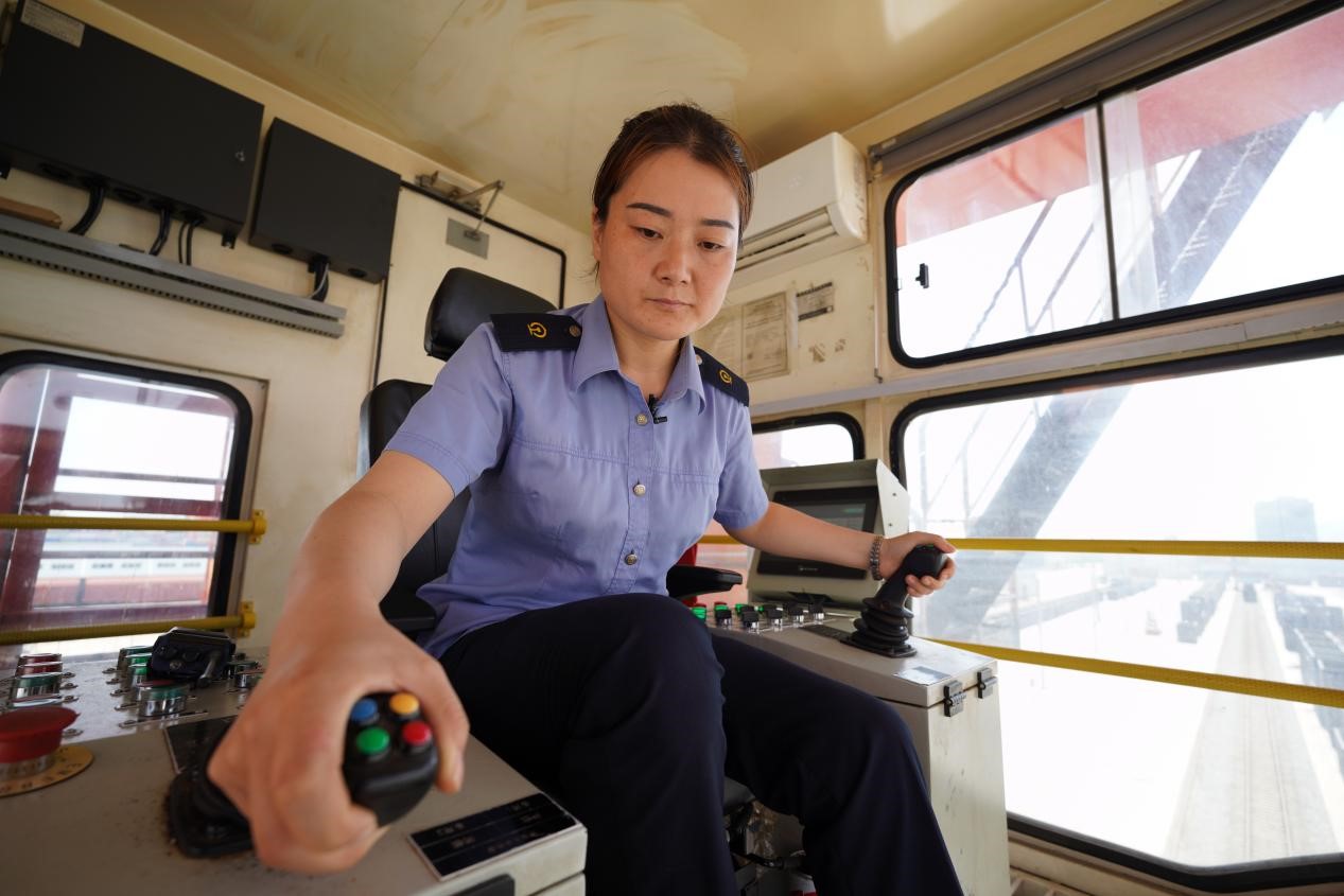 袁佳靜正在操作龍門吊 海外網(wǎng) 謝明/攝