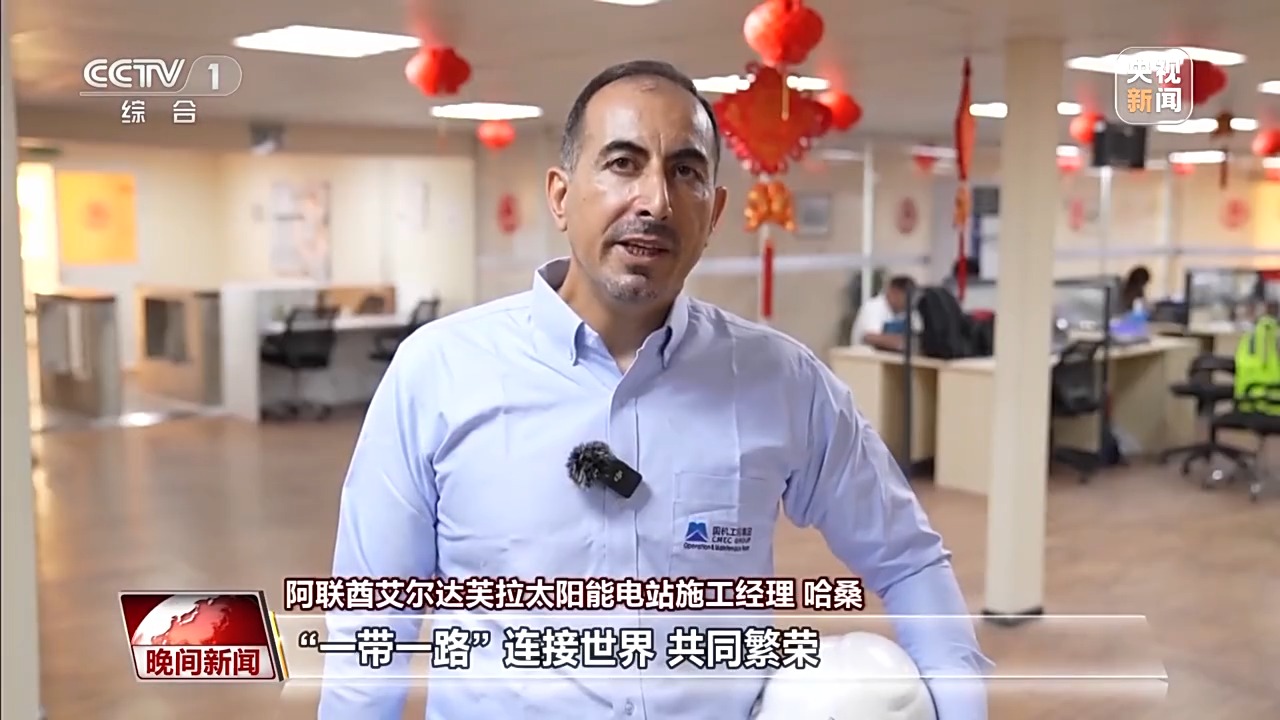 阿聯(lián)酋艾爾達(dá)芙拉太陽能電站施工經(jīng)理 哈桑:“一帶一路”連接世界,共同繁榮。