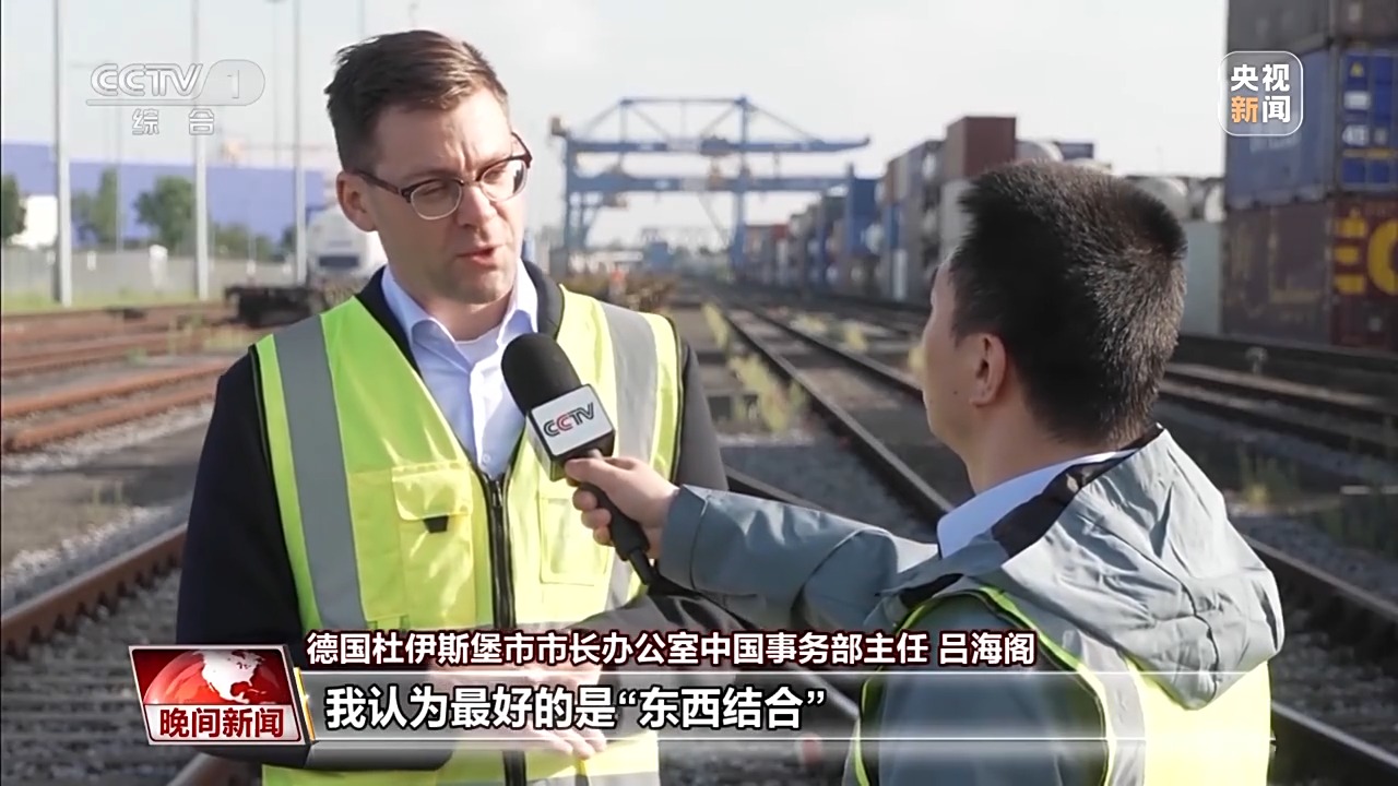 德國杜伊斯堡中國事務(wù)專員 陶逸泊:中歐班列直達(dá)杜伊斯堡帶來巨大改變和全新機(jī)遇。這條線路綿延上萬公里,從中國出發(fā)穿越6個(gè)國家,抵達(dá)我們這里。一切工作能在十幾天內(nèi)完成,非常了不起。