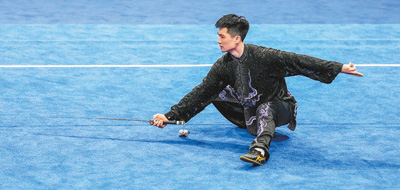 9月25日,武術(shù)男子太極拳太極劍全能決賽,中國(guó)體育代表團(tuán)選手高浩楠在比賽中。
