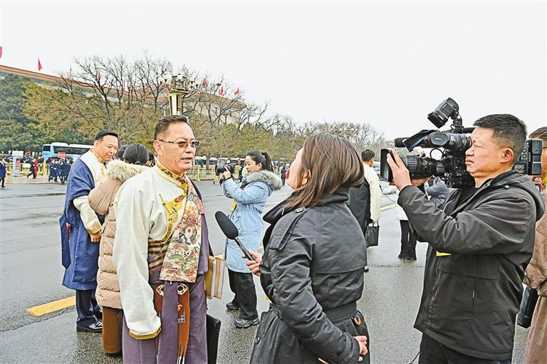 圖為全國(guó)人大代表羅慶伍接受媒體采訪。記者 旦增西旦 攝
